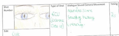 We've had to change some shots as we have now decided that the only time we will see the killer/kidnapper is when he opens the door in the final shot. This means our focus is now mainly on the killer/kidnapper.